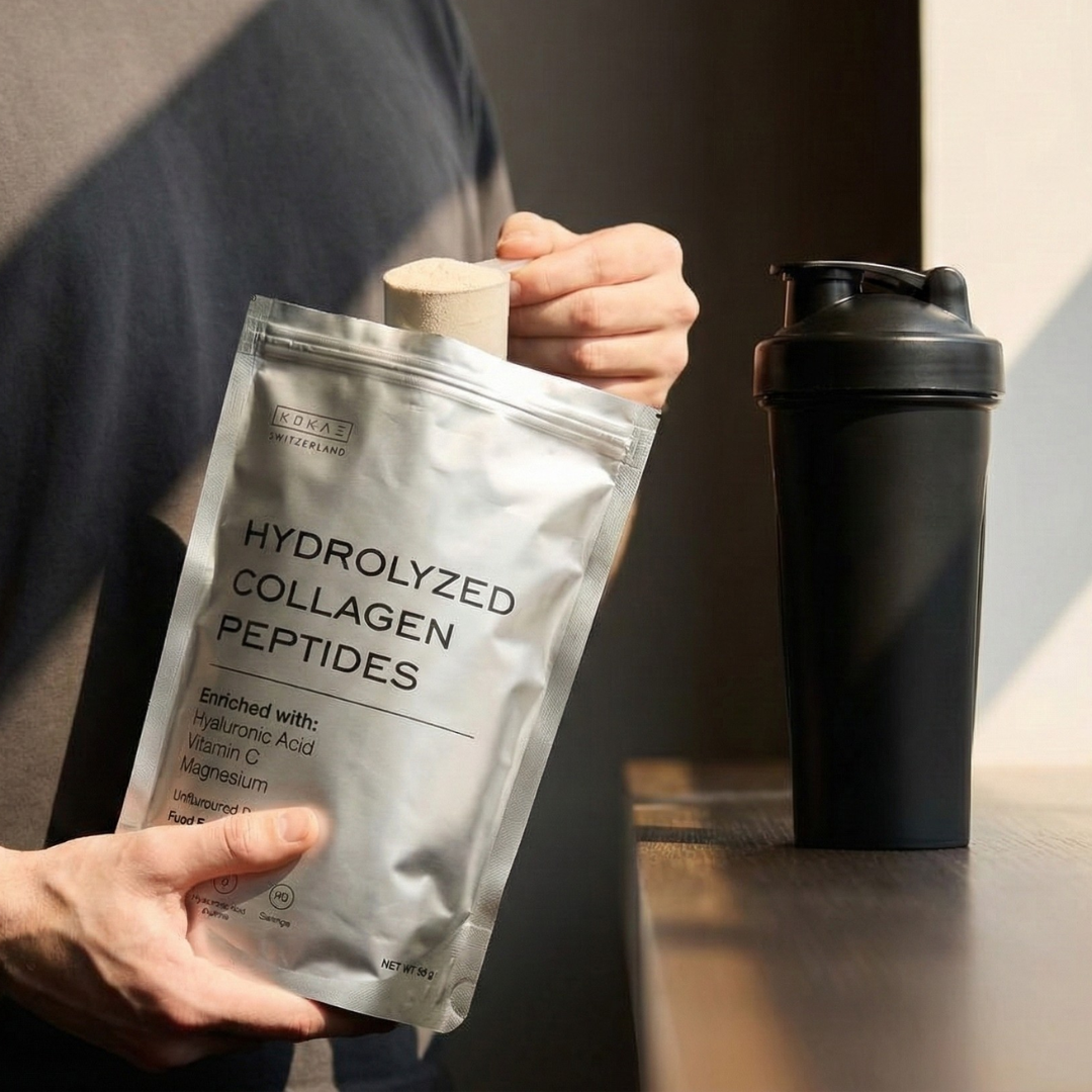 Hydrolysierte Kollagenpeptide liefern die strukturellen Bausteine. Vitamin C aktiviert die Prolyl- und Lysyl-Hydroxylase – essenziell für stabile Kollagenfasern. Magnesium unterstützt enzymatische Signalprozesse auf zellulärer Ebene. Ohne Cofaktoren bleibt Kollagen ein Rohstoff. Mit System wird es Struktur. KOKAE® ist präzise formuliert.